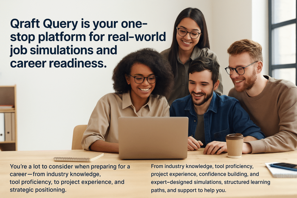 Qraft Query is your one-stop platform for real-world job simulations and career readiness. Our team of industry-focused creators designs immersive, hands-on experiences that prepare you for the job market with confidence and clarity. With Qraft Query, you gain practical skills, portfolio-ready projects, and a clear path to your professional goals, all without the hassle.